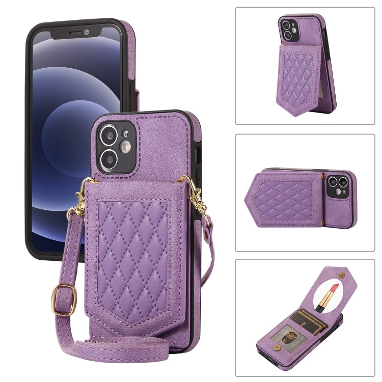 Funda para iPhone 11 Rhombic Texture con RFID, Cordón y Espejo (Púrpura)