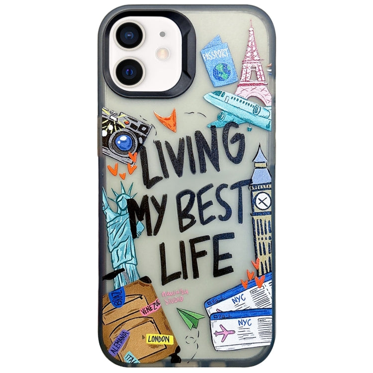 Funda para Teléfono iPhone 12 TPU + PC con Pintura Colorida (Etiquetas de Viaje)