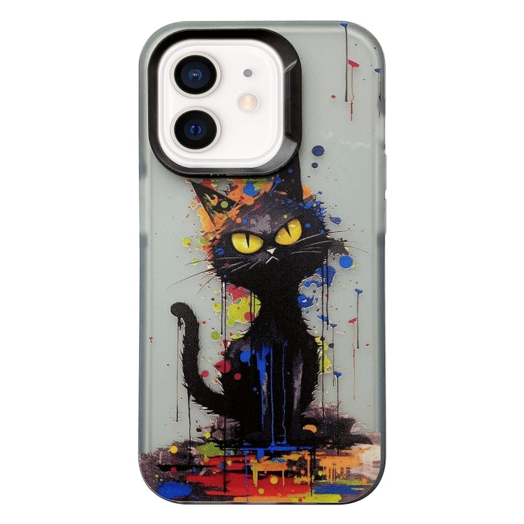 Funda para Teléfono TPU iPhone 12 Animales Tinta de Color Pintado (Gato Negro)