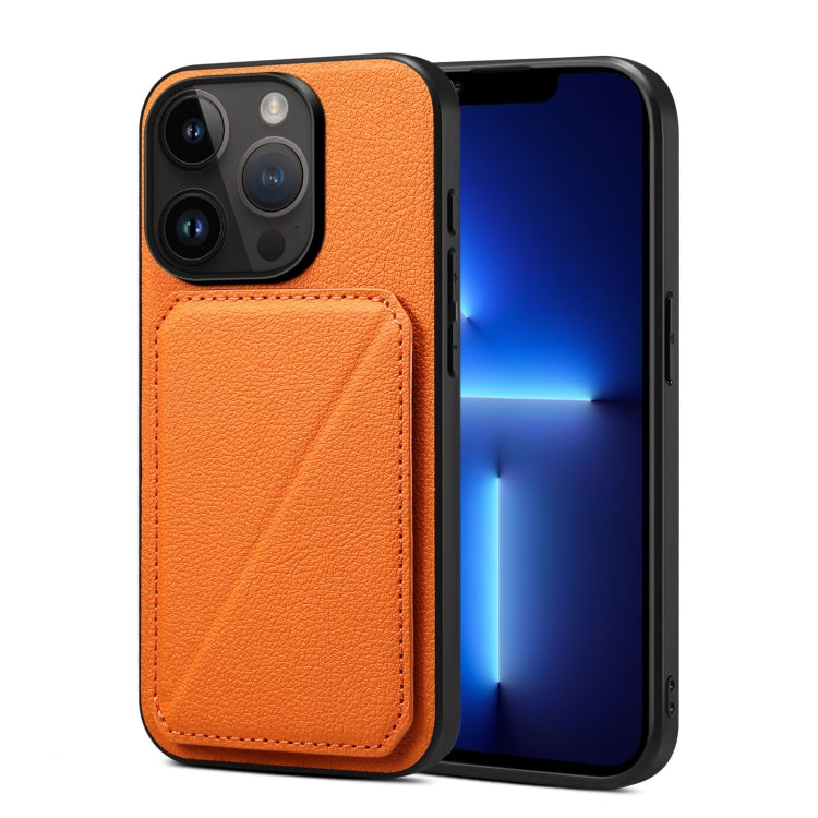 Funda Trasera para iPhone 13 Pro de piel de becerro de imitación con soporte (Naranja)