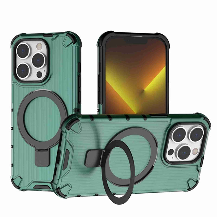Pour iPhone 14 Pro Étui de téléphone avec support de grille antichoc (vert)