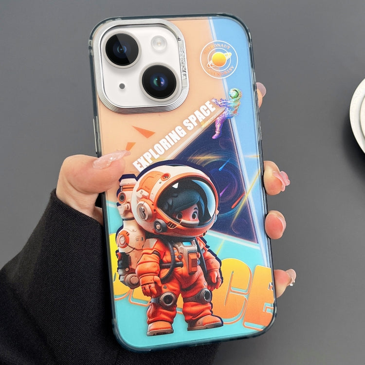 Estuche para teléfono iPhone 14 Astronauta Colorido Grabado (Naranja Pequeño)