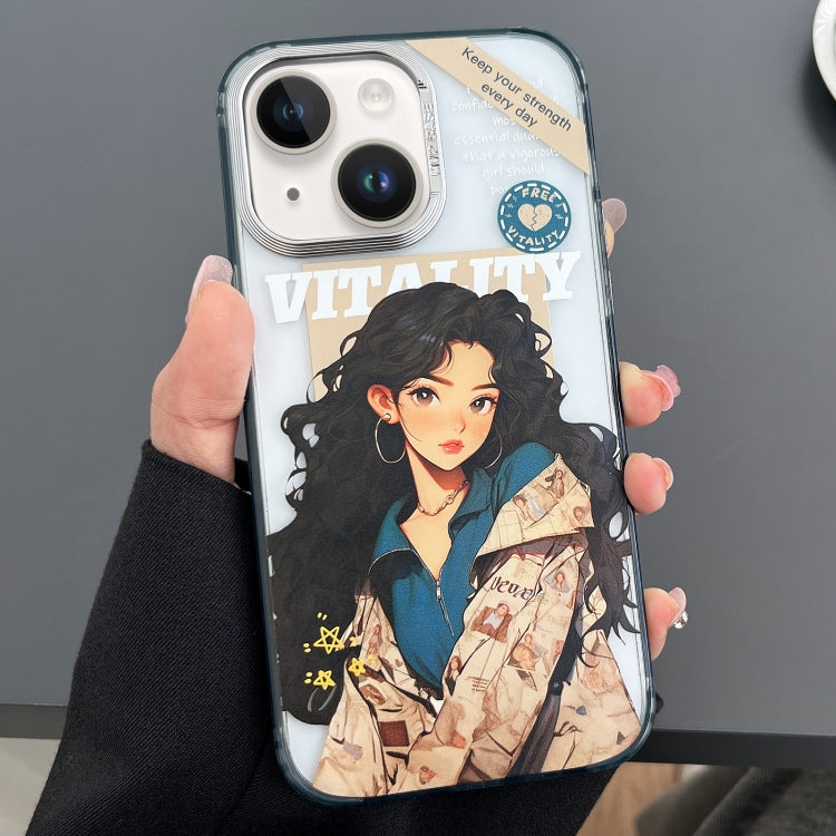 Estuche para teléfono iPhone 14 dibujos animados grabados chica de moda