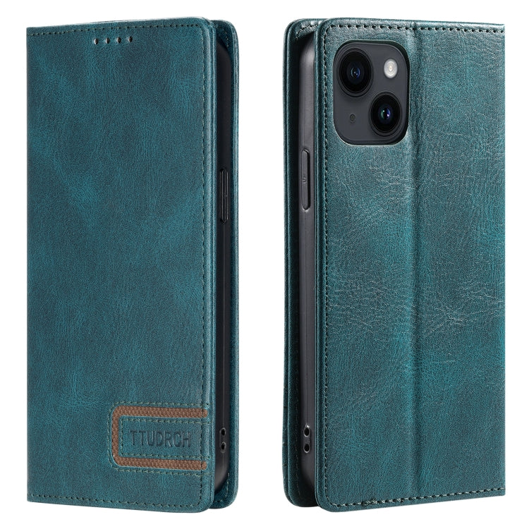 Funda de Teléfono Ttudrch para iPhone 14 / 13 Cuero Magnético Textura Retro (Azul)