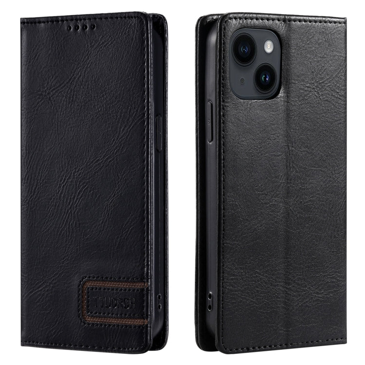 Funda de Teléfono Ttudrch para iPhone 14/13 Cuero Magnético Textura Retro (Negro)