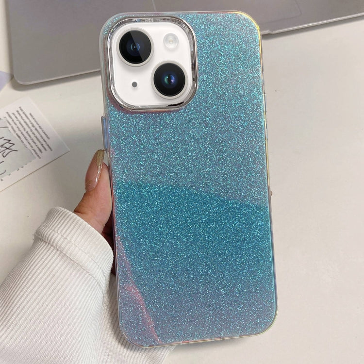 Estuche para Teléfono iPhone 14 Marco Galvanizado Imd Glitter Powder (Azul Plateado)