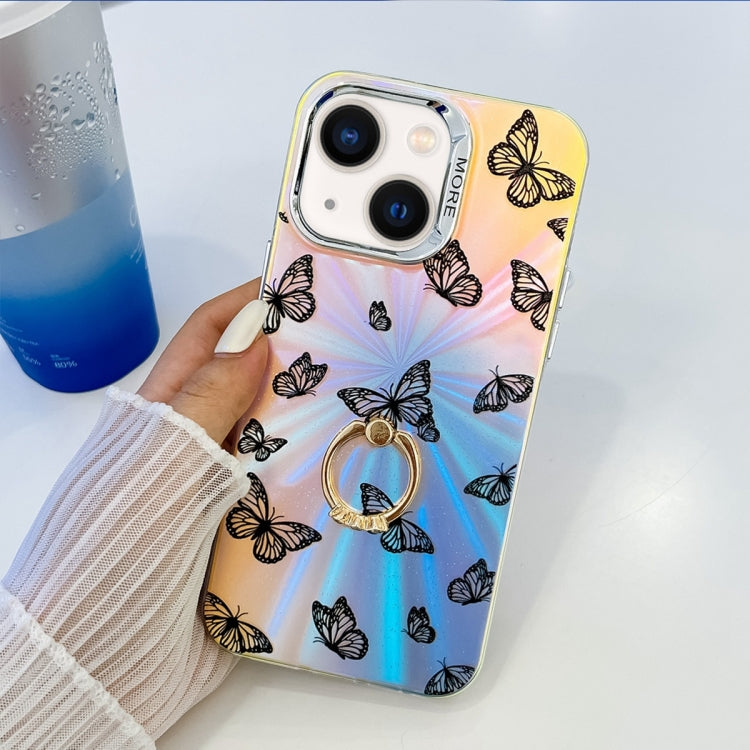 Funda para iPhone 14 con Soporte de Anillo Mariposa LĂĄser de Galvanoplastia