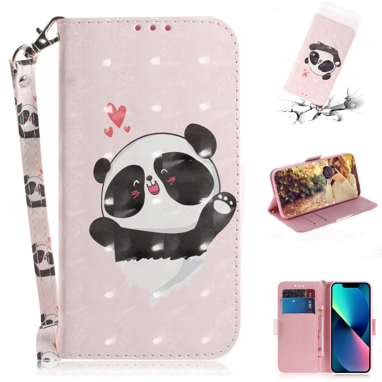 Estuche para Teléfono iPhone 14 Cuero Tapa Horizontal Color 3D (Panda del Corazón)
