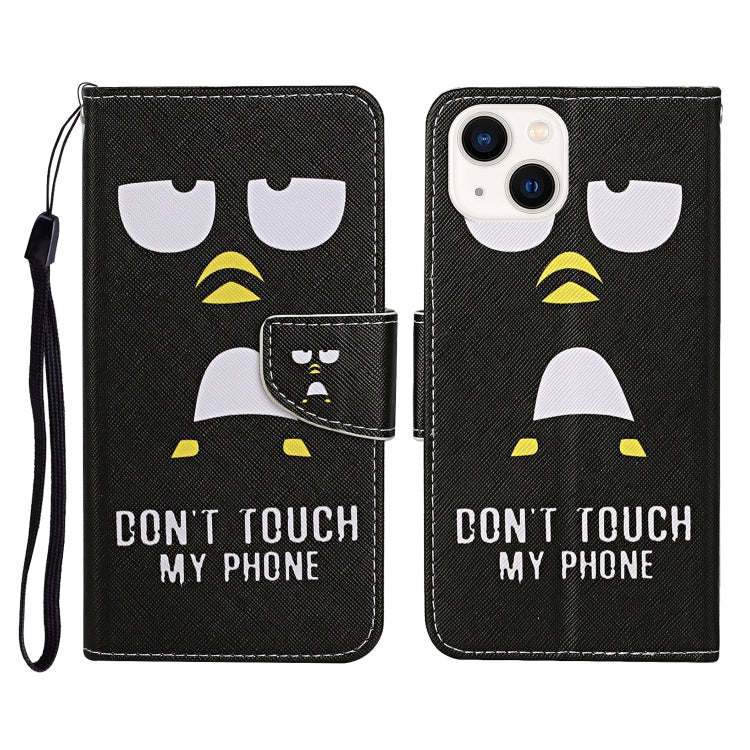 Estuche para TelĂ©fono iPhone 14 Cuero con Tapa Dibujo Color 3D (PingĂŒinos)