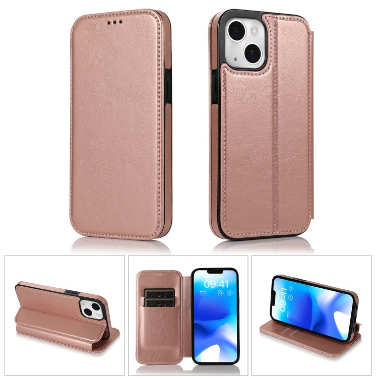 Funda para iPhone 14 Cierre Magnético Fuerte PU y TPU Cuero (Oro Rosa)
