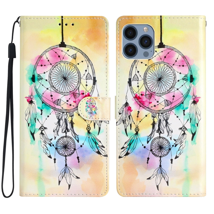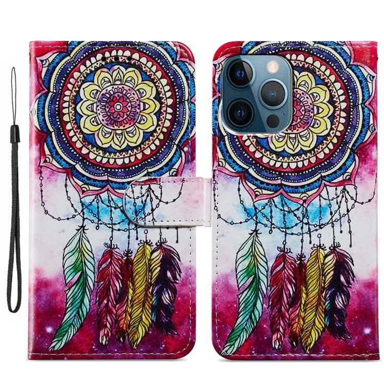 Estuche para Teléfono iPhone 15 Pro Cuero con Dibujo Coloreado Atrapasueños