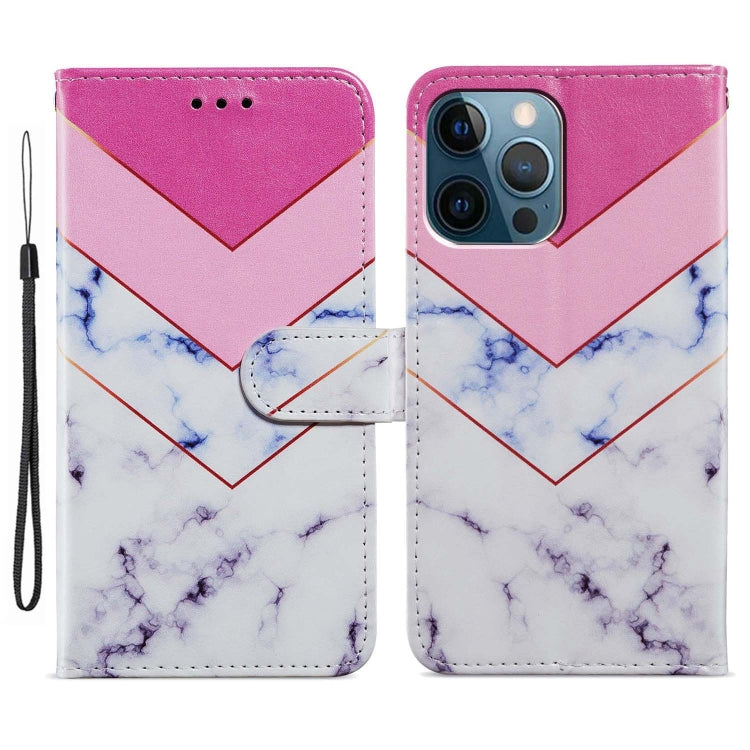 Estuche para Teléfono iPhone 15 Pro Cuero Patrón Mármol Pintado (Rosa Púrpura)