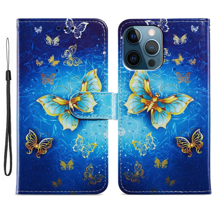 Estuche para Teléfono iPhone 15 Pro Cuero con Dibujo Coloreado Mariposa Azul