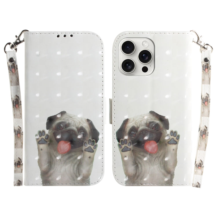 Funda para Teléfono iPhone 16 Pro Max 16 Pro Cuero Tapa Horizontal Color 3D (Pug)