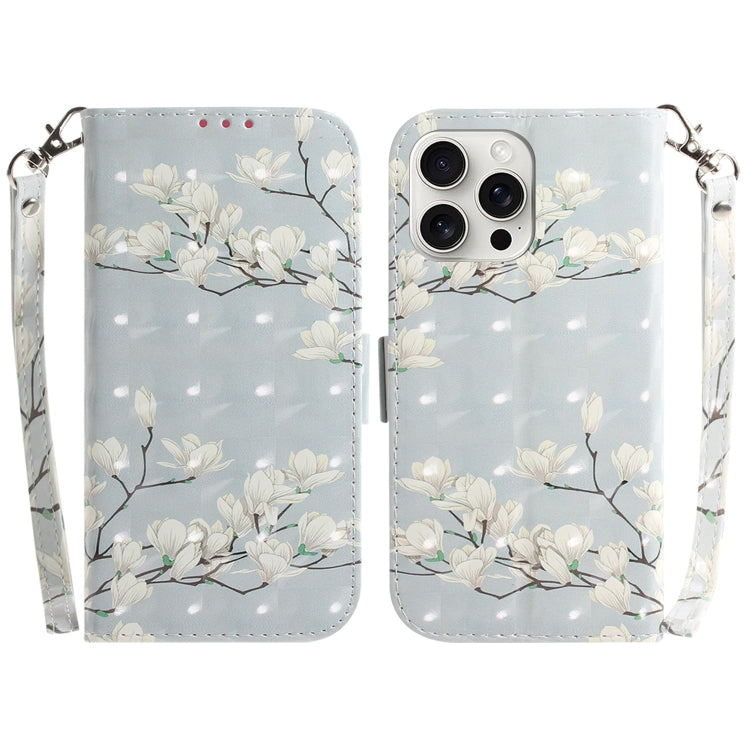 Pour iPhone 16 Pro Max Étui en cuir à rabat avec dessin coloré (Magnolia)