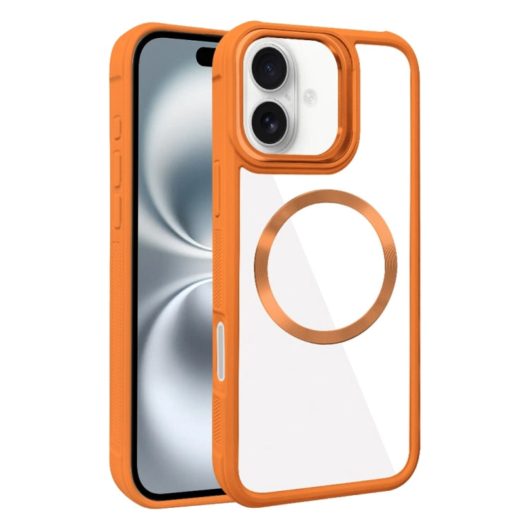Funda hĂbrida AcrĂlico TPU con textura Cd chapada Magsafe para iPhone 16 (Naranja)