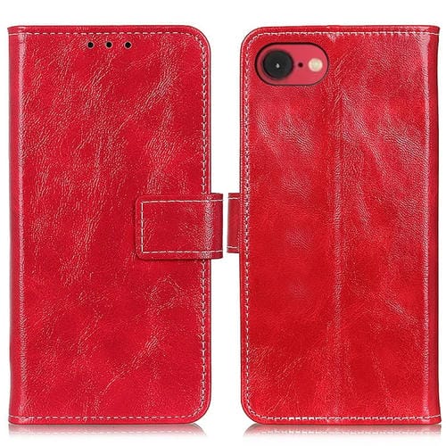 Funda de Cuero Caballo Loco para iPhone 16E con Tapa Horizontal y Textura Retro (Rojo)