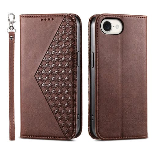 Étui en cuir magnétique à grille cubique à texture de veau pour iPhone SE 2024 (marron)