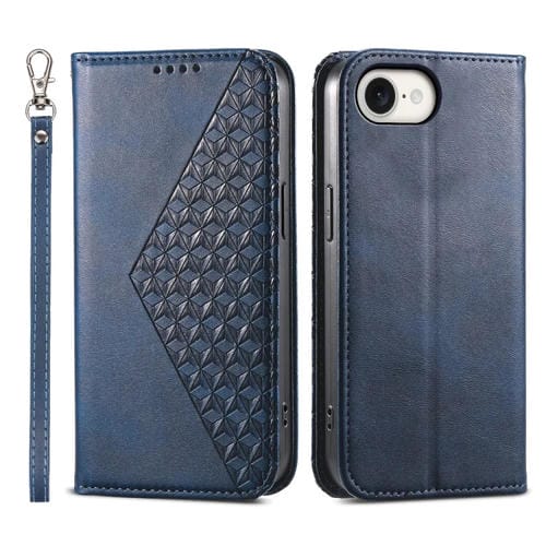 Étui en cuir magnétique à grille cubique à texture de veau pour iPhone SE 2024 (bleu)