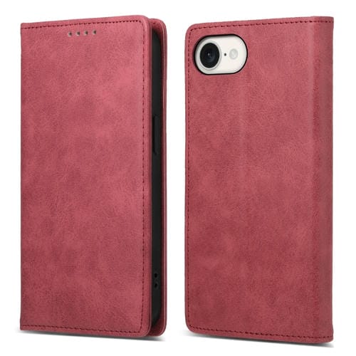 Étui en cuir magnétique à grille cubique à texture de veau pour iPhone SE 2024 (rouge)