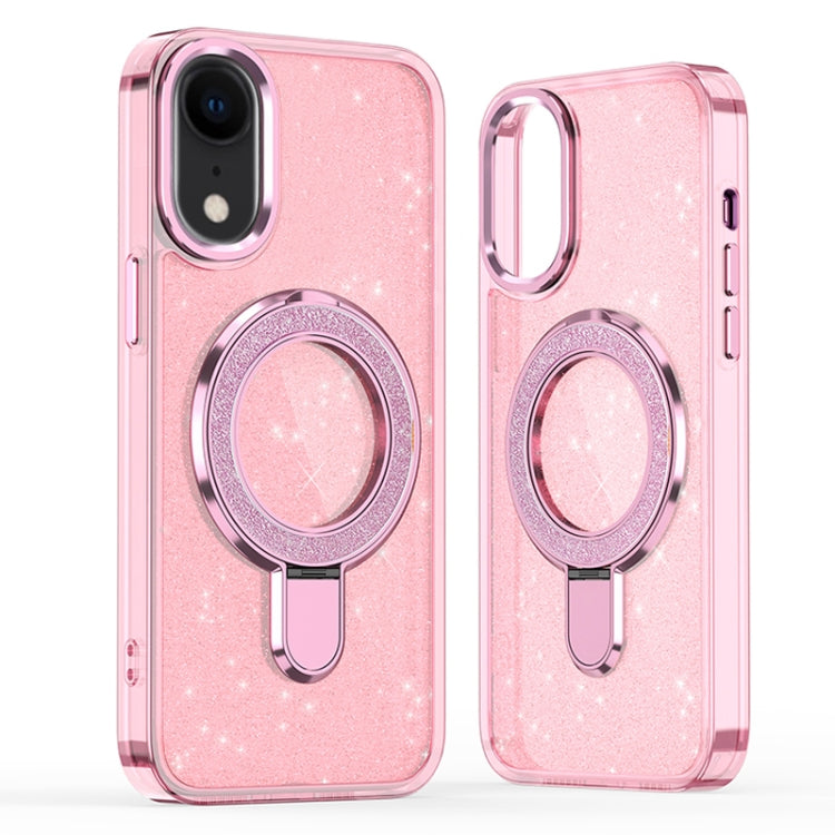 Funda para Teléfono con Soporte de Anillo con Purpurina Magsafe para iPhone Xr (Rosa)