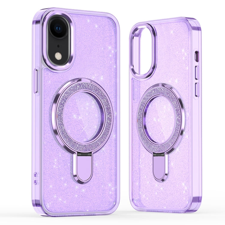 Funda para Teléfono Magsafe con Soporte de Anillo y Purpurina para iPhone Xr (Morado)