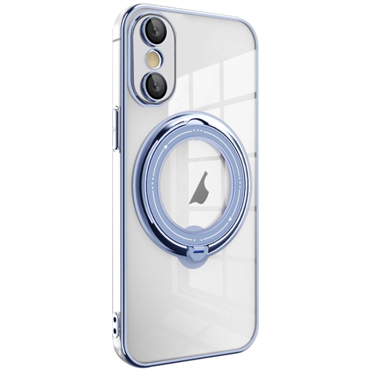 Estuche para teléfono iPhone Xs X Galvanoplastia Magsafe Soporte Rotación 360º (Azul)