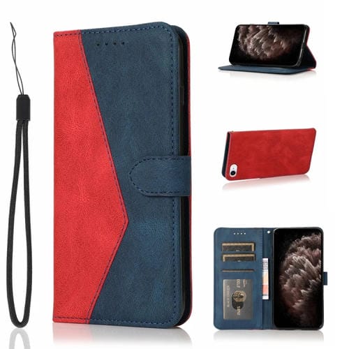 Funda de Teléfono iPhone SE 2022/2020 Cuero con Costuras Dos Colores (Rojo Azul)