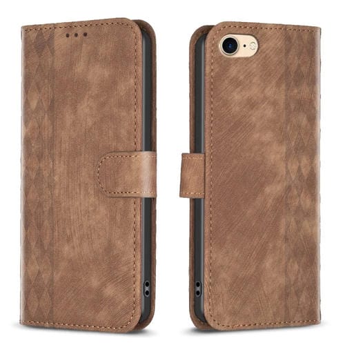 Estuche para Teléfono iPhone SE 2022 / 7 / 8 Cuero En Relieve a Cuadros (Marrón)