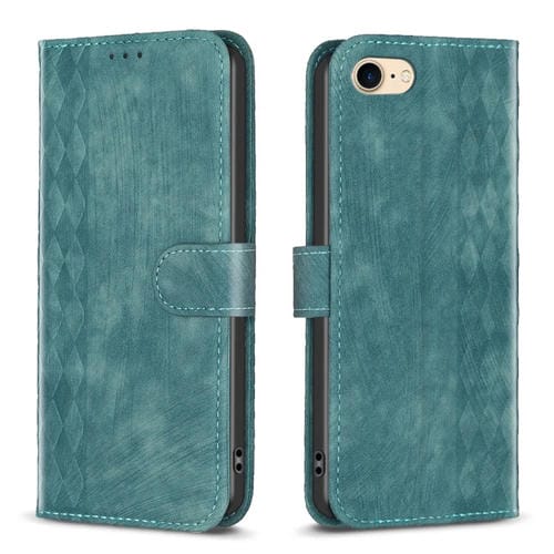 Estuche para Teléfono iPhone SE 2022 / 7 / 8 Cuero en Relieve a Cuadros (Verde)