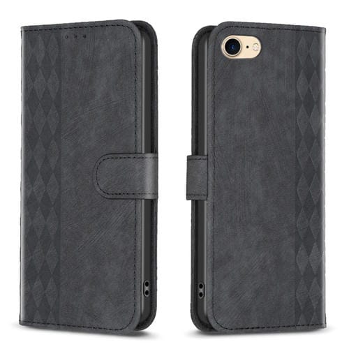 Estuche para Teléfono iPhone SE 2022 / 7 / 8 Cuero en Relieve a Cuadros (Negro)