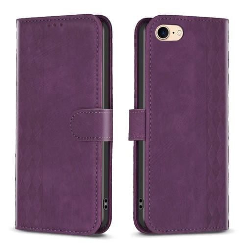Estuche para TelĂ©fono iPhone SE 2022 / 7 / 8 Cuero En Relieve a Cuadros (PĂșrpura)