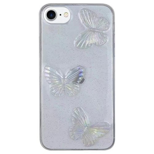 Funda de teléfono TPU iPhone SE 2022/2020/7/8 con mariposas de cristal (Transparente)