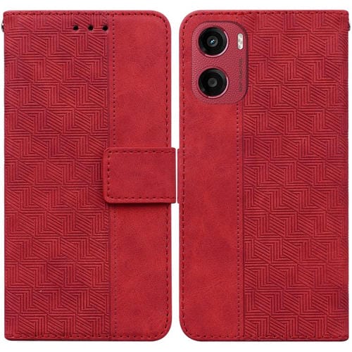 Funda de Cuero con Relieve Geométrico para Motorola Moto G05/E15 (Rojo)
