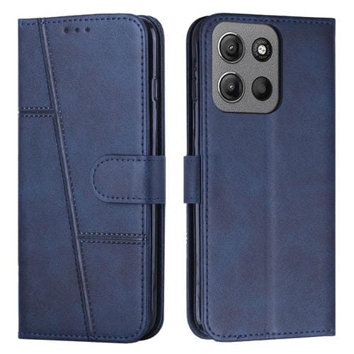 Funda de Cuero Textura de Becerro con Costuras para Motorola Moto G15 (Azul)
