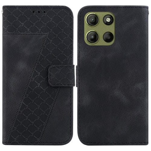 Funda de Cuero con Relieve Geométrico para Motorola Moto G05/E15 (Negra)