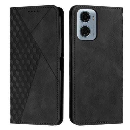 Funda de Cuero Magnética con Diseño de Diamante para Motorola Moto G05 (Negra)