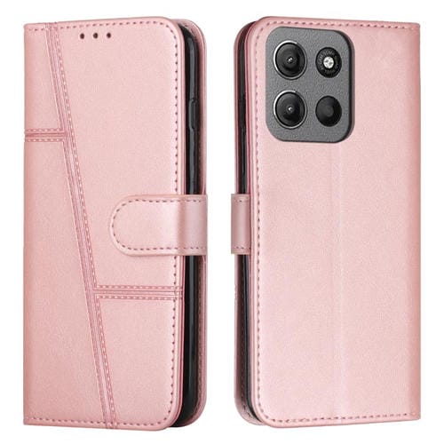 Funda de Cuero Textura Becerro con Costuras para Motorola Moto G15 (Oro Rosa)