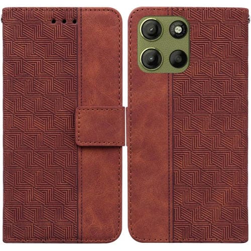 Funda de Cuero con Relieve Geométrico para Motorola Moto G15 (Marrón)