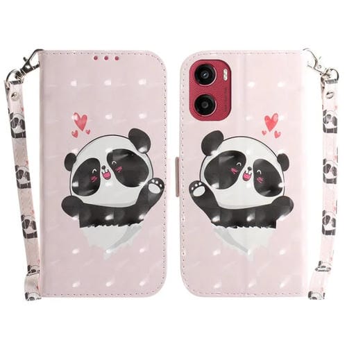 Funda de Cuero con Tapa 3D para Motorola Moto G05/E15 (Panda con Forma de Corazón)