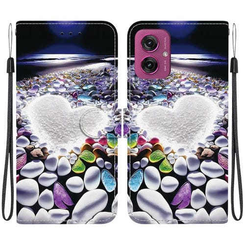 Funda de Cuero Motorola Moto G55 con Dibujo Colorido y Textura de Cristal (Corazón)