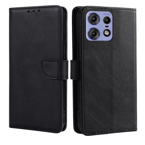 Funda de Cuero con Tapa y Hebilla para Motorola Edge 50 Fusion 5G (Negro)