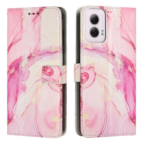 Funda de Cuero con Patrón de Mármol para Motorola Moto G Power 5G (2024) (Oro Rosa)