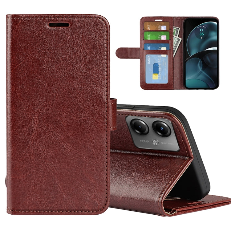 Funda de Cuero para Motorola Moto G14 R64 con Tapa Horizontal y Textura (Marrón)