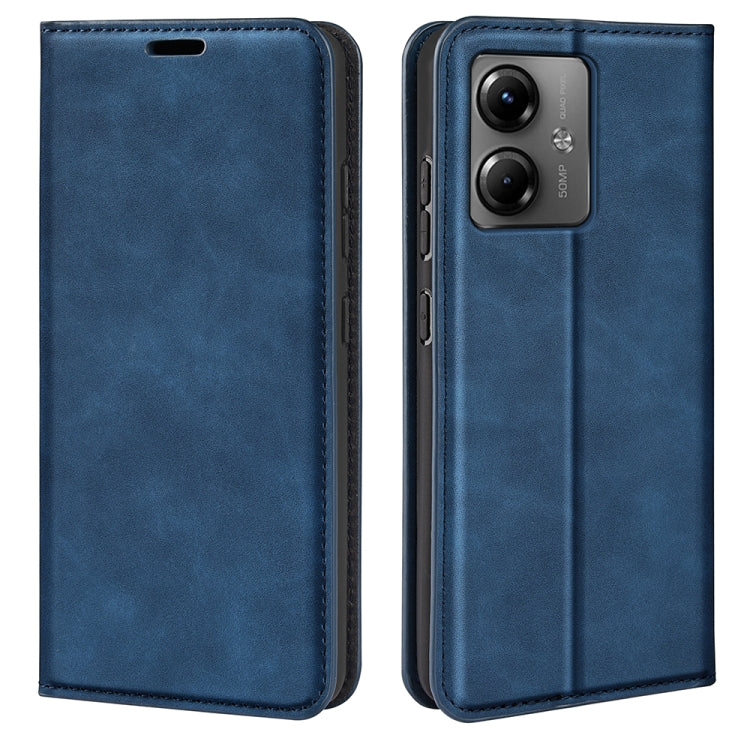 Funda de Cuero para Motorola Moto G14 con Succión Magnética Piel Retro (Azul Oscuro)