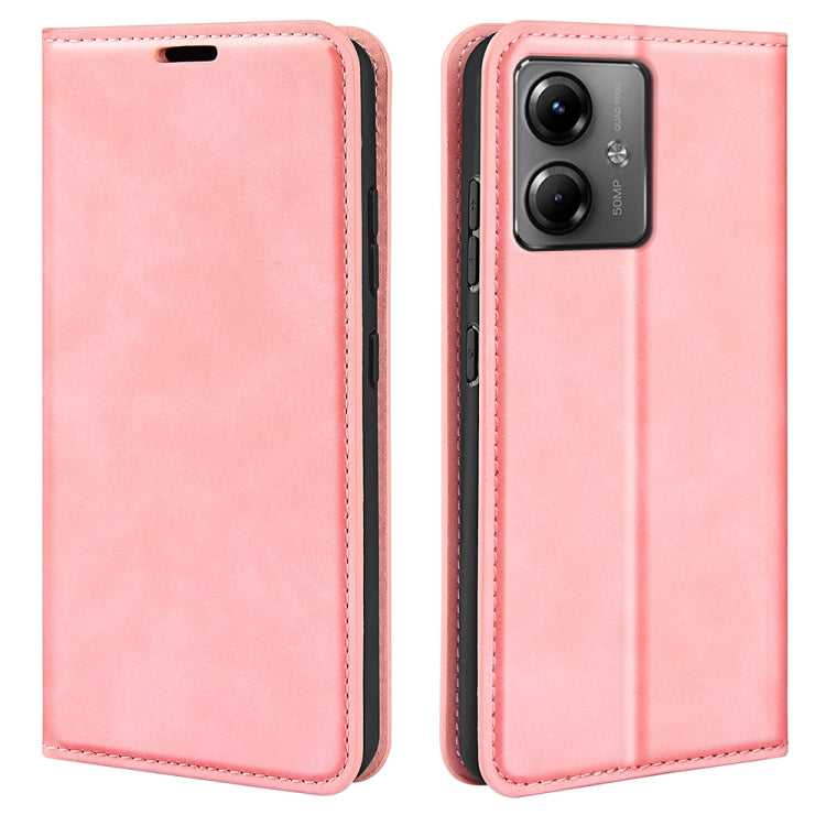Funda de Cuero para Motorola Moto G14 con Succión Magnética de Piel Retro (Rosa)