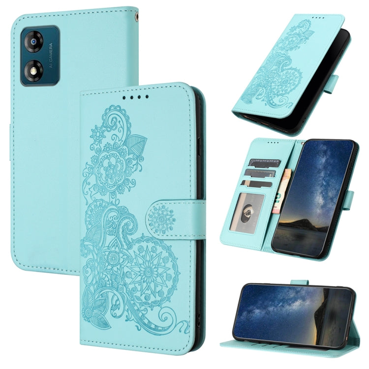 Funda de Cuero para Motorola Moto E13 Datura Flower con Tapa en Relieve (Azul Claro)