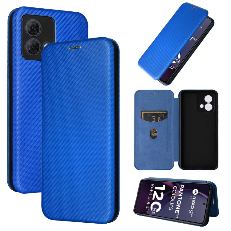 Funda de Cuero con Tapa para Motorola Moto G84 5G Textura de Fibra de Carbono (Azul)