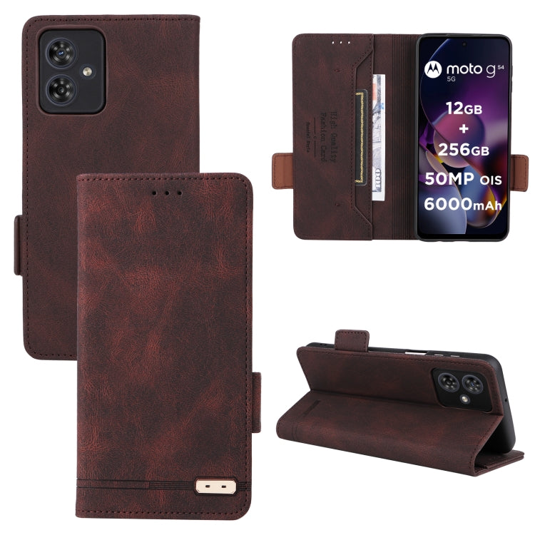 Funda de Cuero para Motorola Moto G54 5G con Cierre Magnético (Marrón)