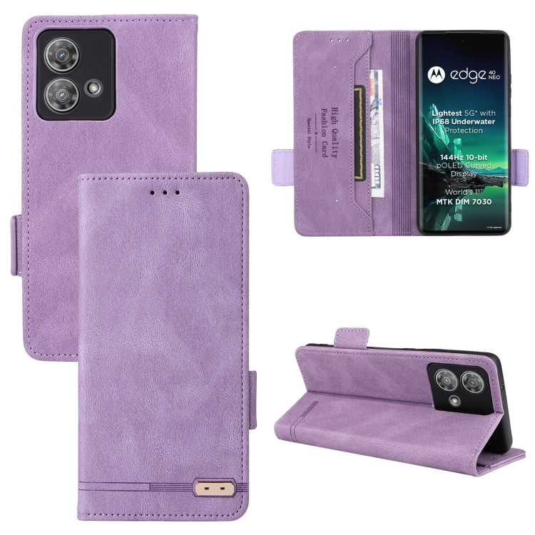 Funda de Cuero para Motorola Edge 40 Neo con Cierre Magnético (Púrpura)